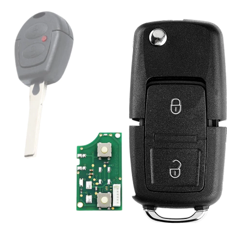 Chave Canivete Completa Volkwagen Fox, SpaceFox, CrossFox - 2005 a 2009 para Alarme Original, basta ir até um chaveiro para fazer a cópia da lâmina, codificar o chip e o controle..